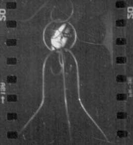These pix were scanned from proofs, that is why they are fuzzy, though I think the grainy image and the incorporation of the film into the image enhances the whole B movie feel of these pics